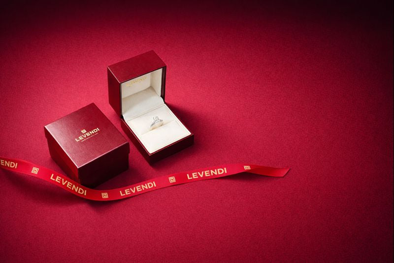 Every Levendi creation is presented in our timeless burgundy box, embossed with the gold Levendi name silhouette. Our complimentary gift wrapping completes the experience, adorned with a signature burgundy ribbon and a refined single-loop bow.